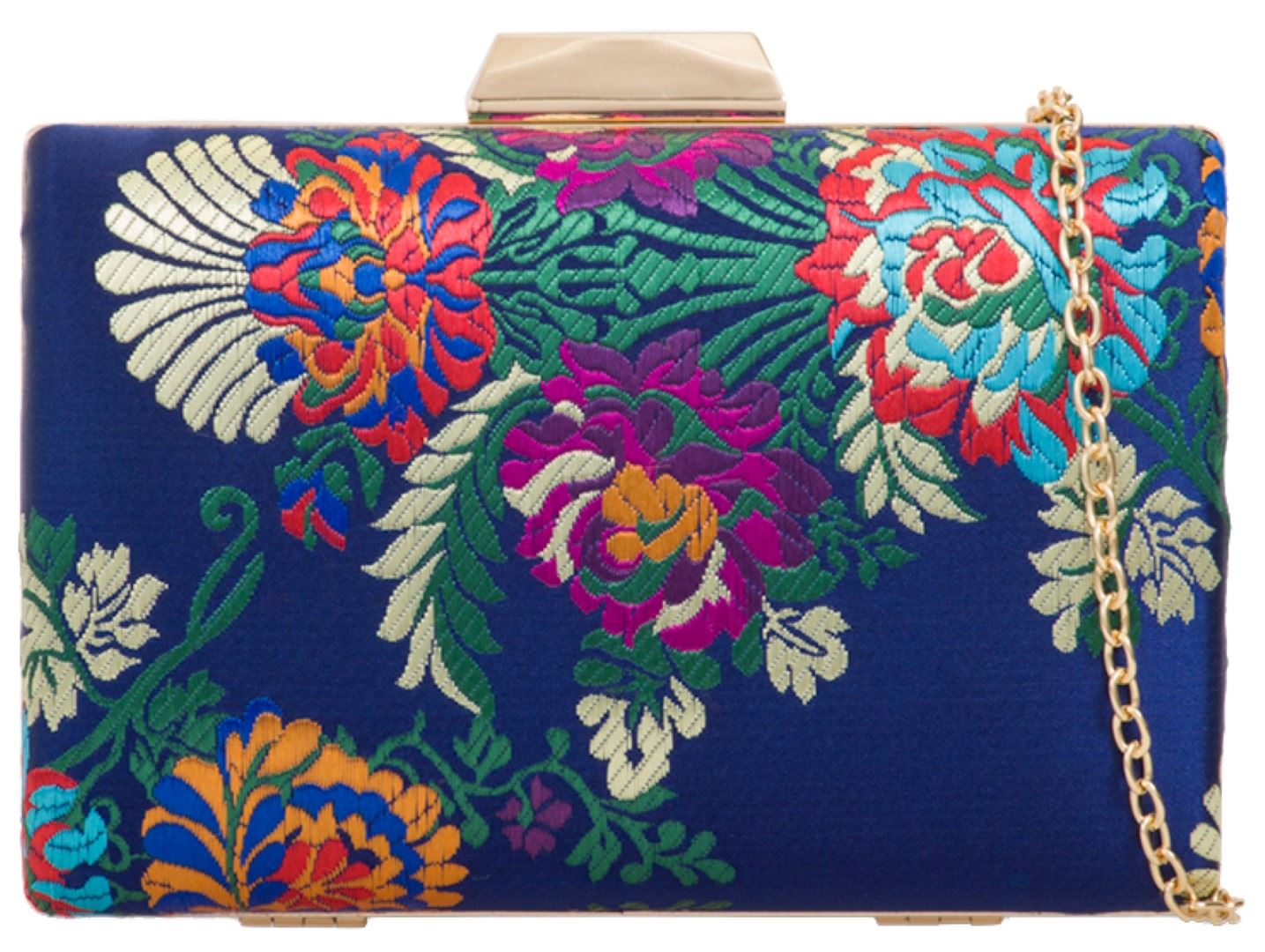 | Hard Case Vintage Satin Clutch Bag Baroque Flowers Plain Closure Evening Party |